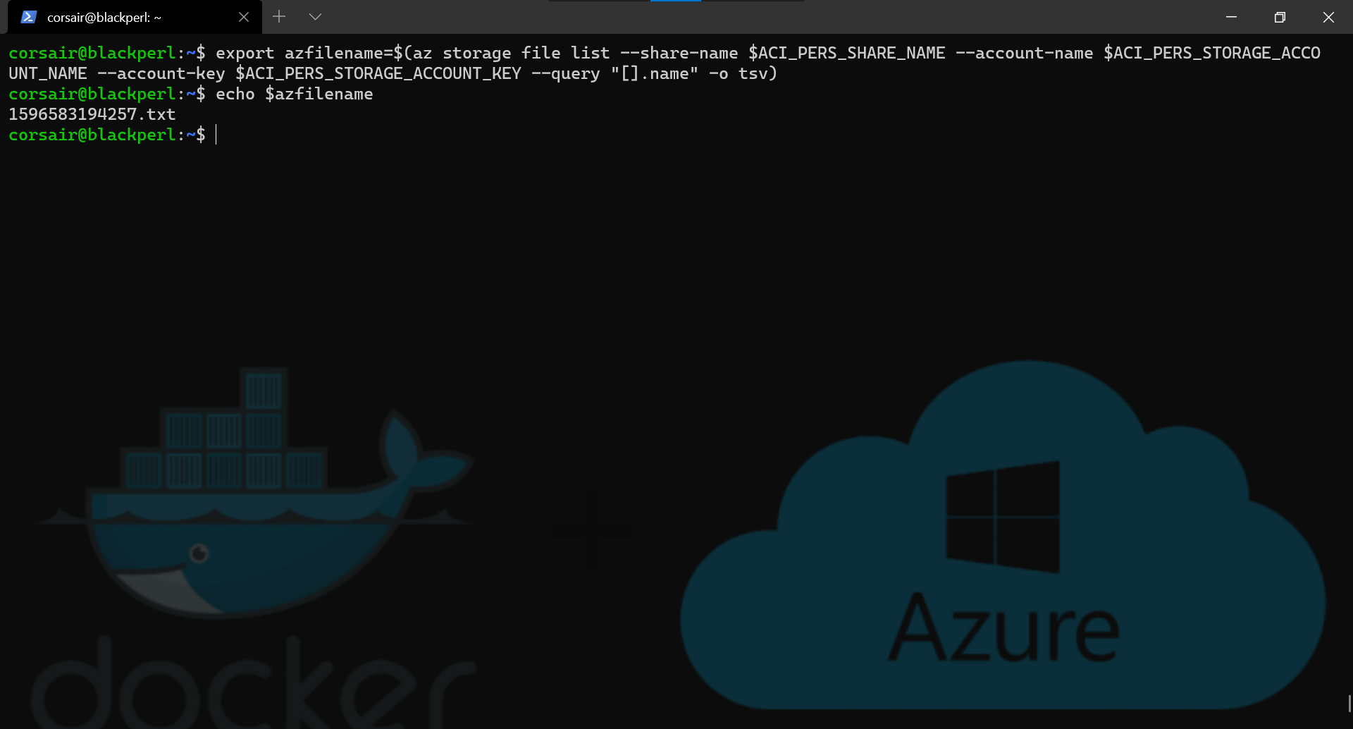 export azfilename=$(az storage file list --share-name $ACI_PERS_SHARE_NAME --account-name $ACI_PERS_STORAGE_ACCOUNT_NAME --account-key $ACI_PERS_STORAGE_ACCOUNT_KEY --query "[].name" -o tsv)