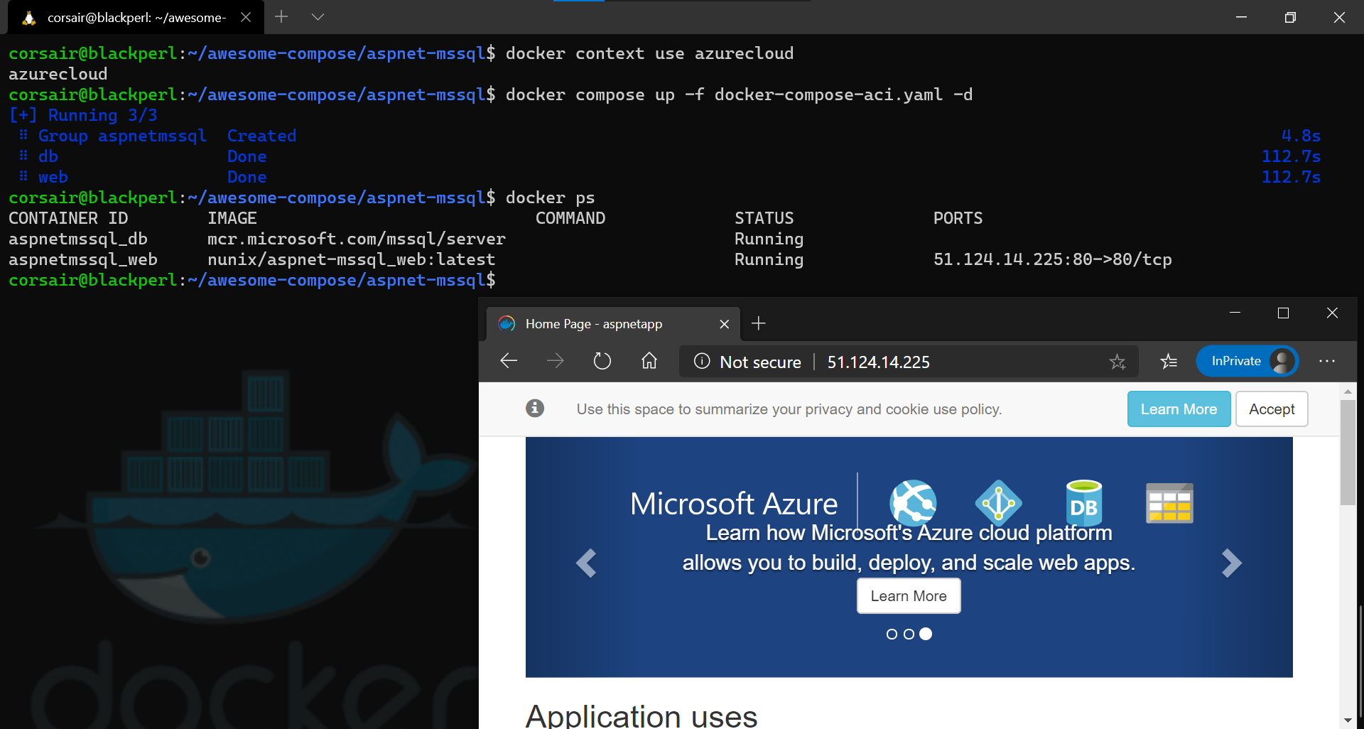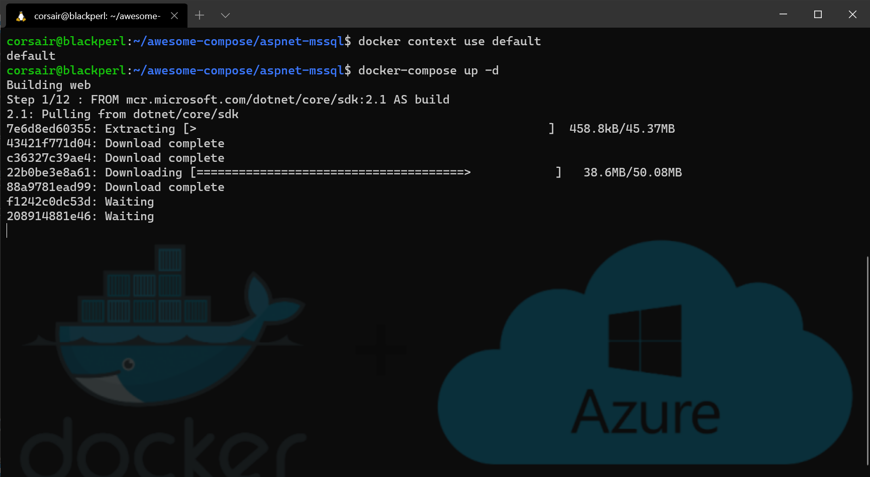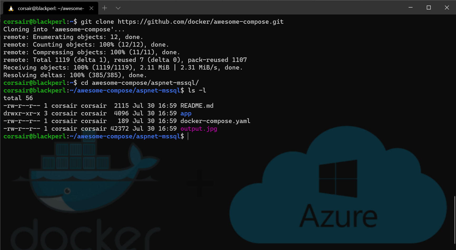 In order to follow the example below, an optional prerequisite is needed: clone the "Awesome Compose" GitHub repository. And because we are targeting Azure, we will be deploying the ASP.NET and SQL Server application.