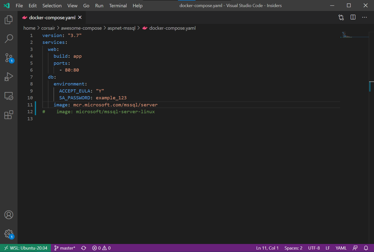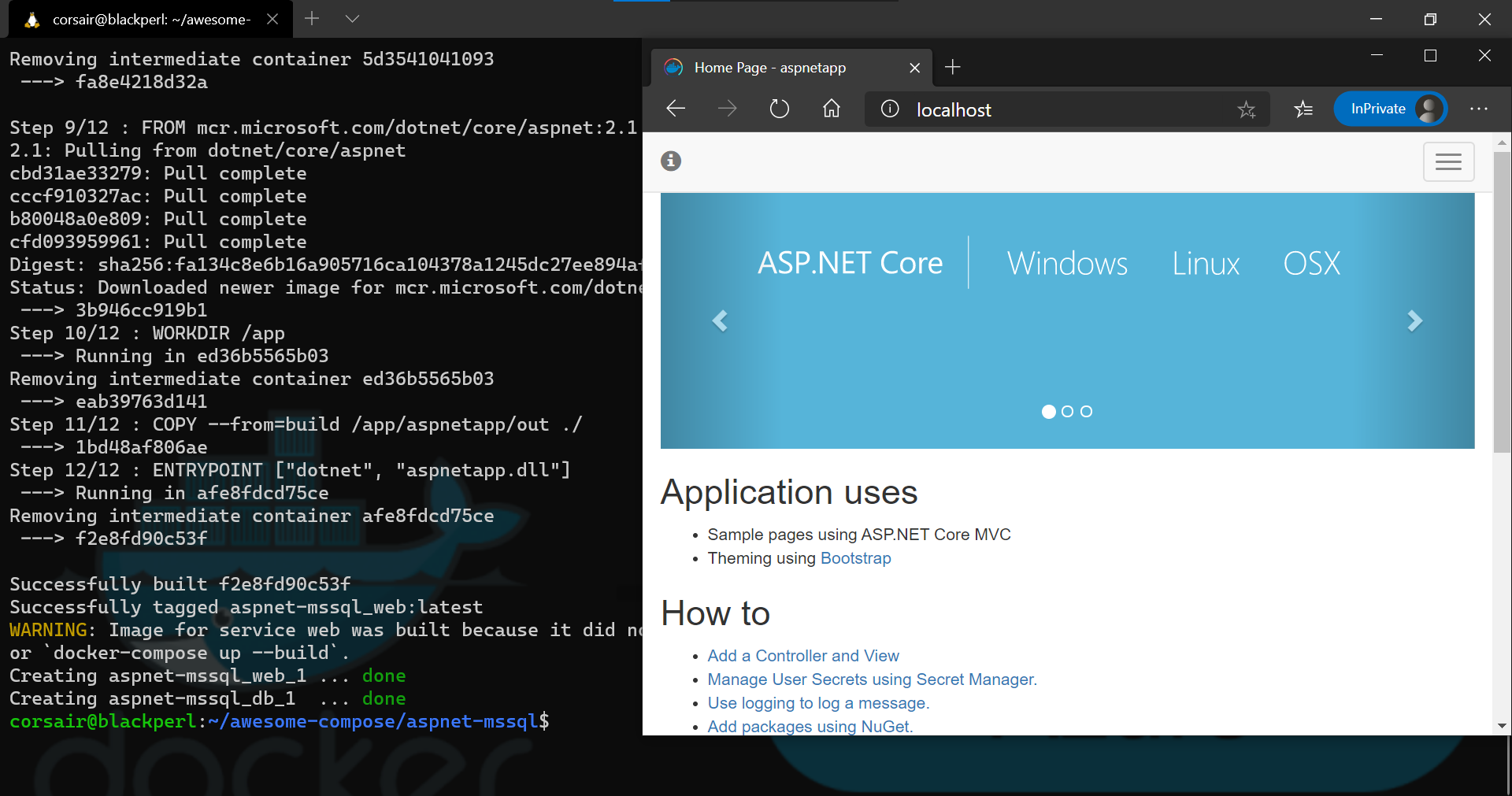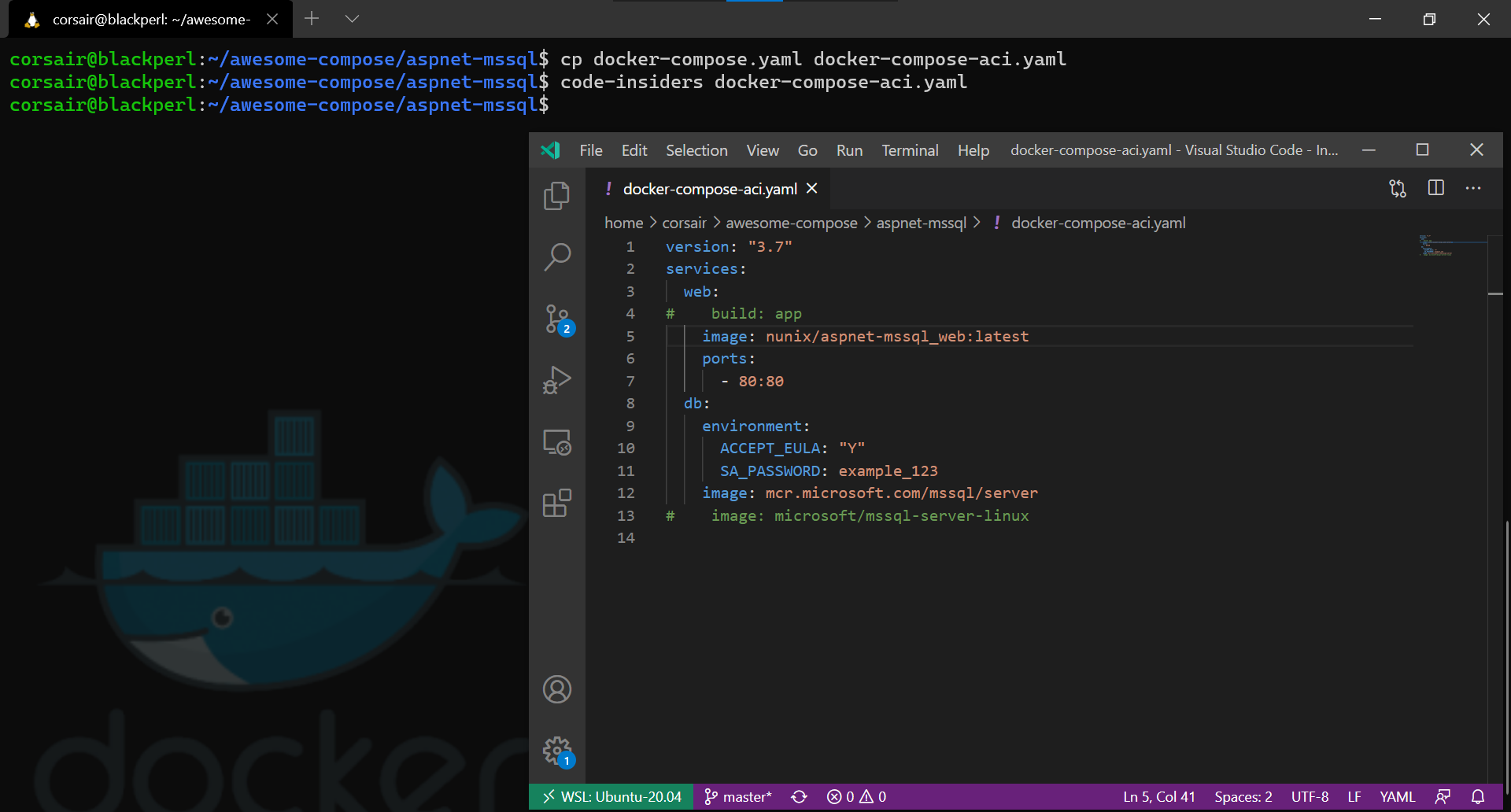 In order to follow the example below, an optional prerequisite is needed: clone the "Awesome Compose" GitHub repository. And because we are targeting Azure, we will be deploying the ASP.NET and SQL Server application.