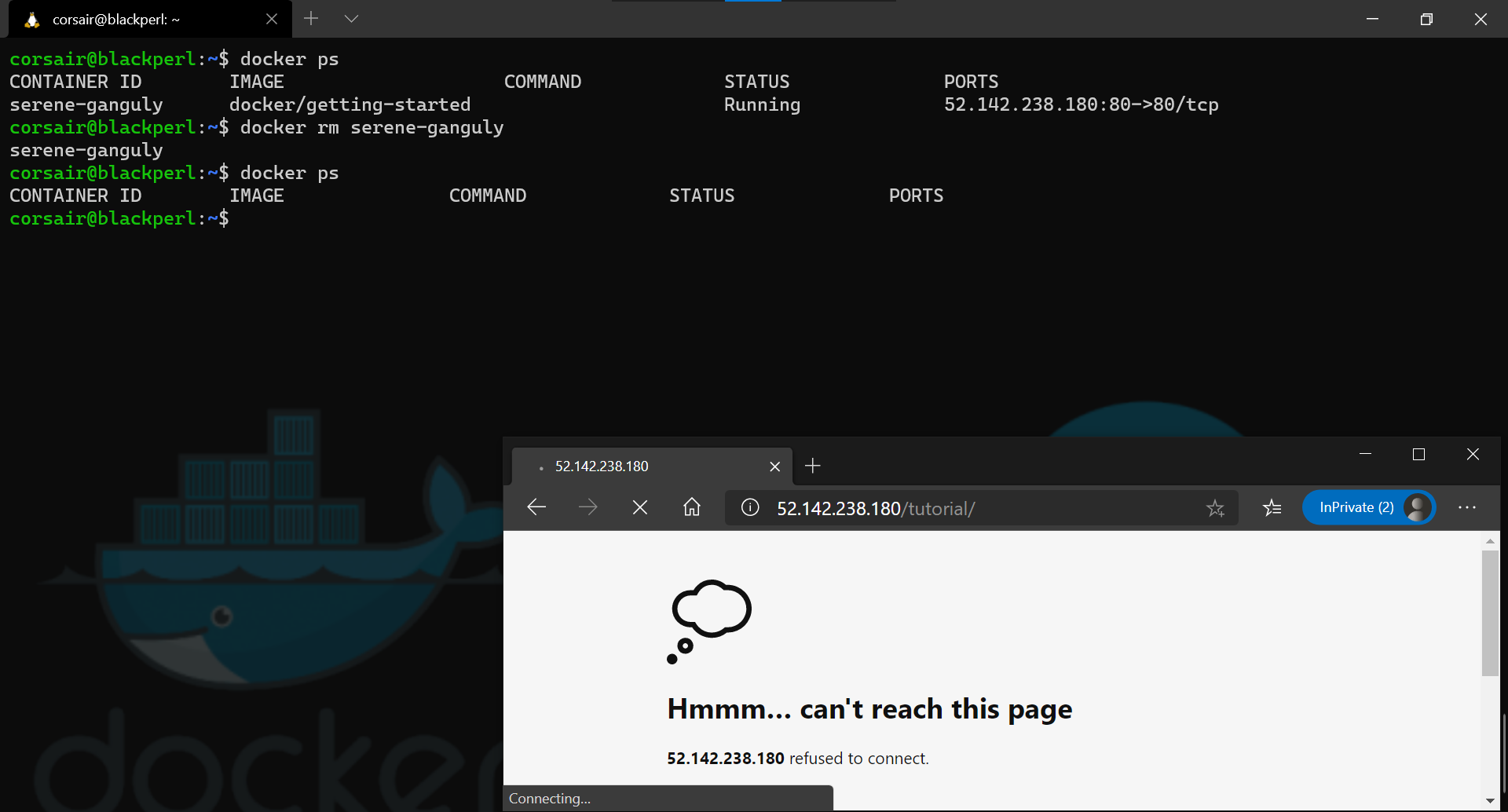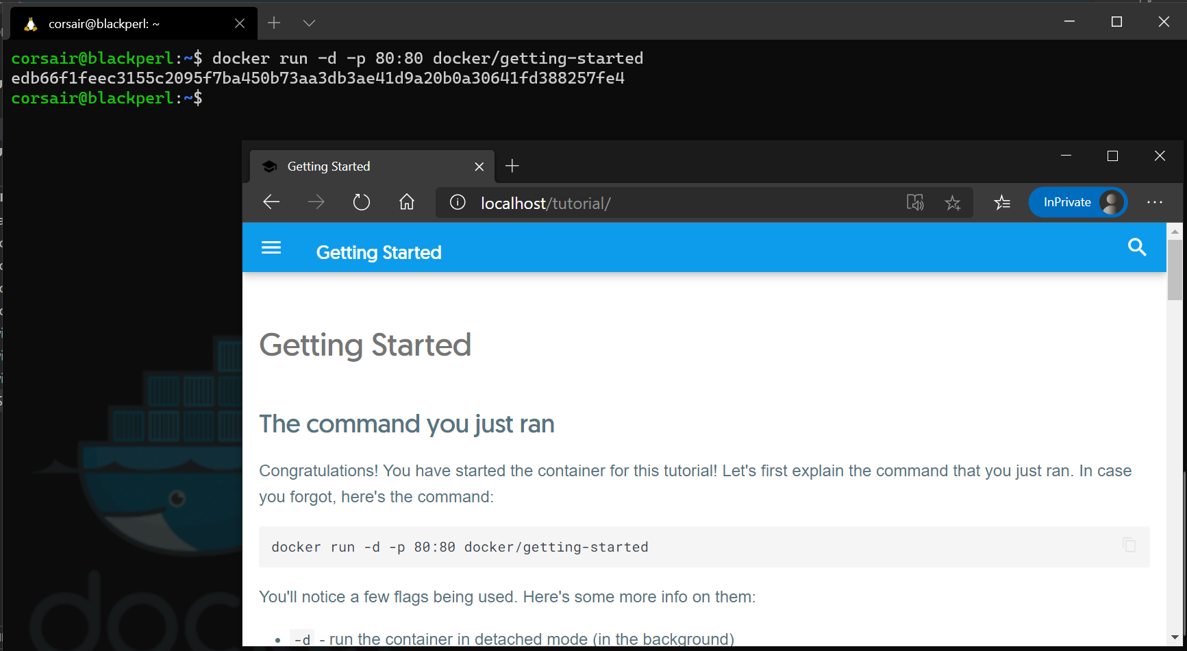 As we can see in the image above, thanks to WSL2 ports mapping, we can reach the container hosted website from a Windows browser.