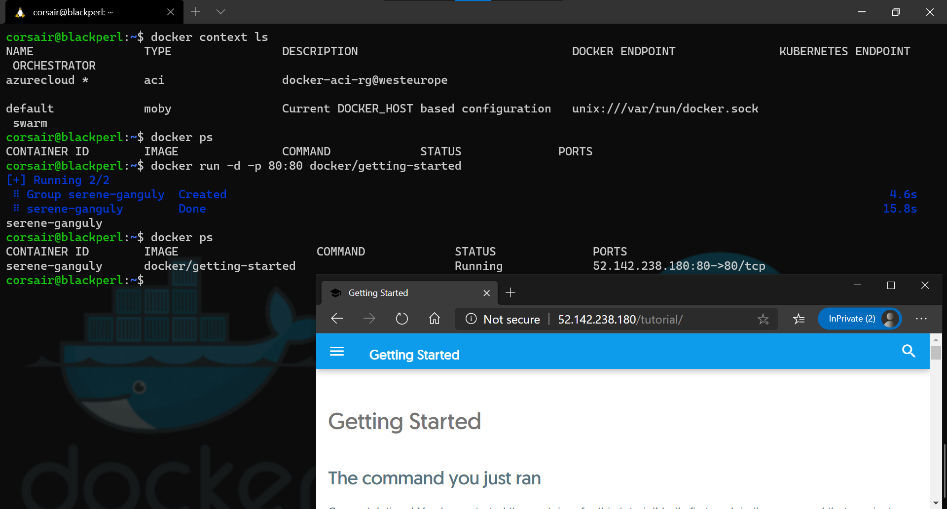And done, how cool is this?! Using the same commands that we learnt while using docker locally, it allows us to publish containers into the Cloud.