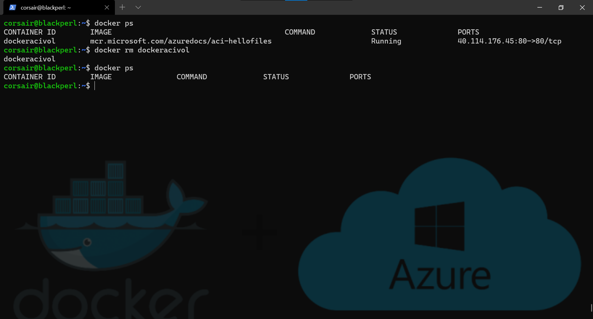 Congratulations! We have have successfully created and deleted a container in ACI. And I know it's repetition, but we did use the exact same commands as if we were working locally.