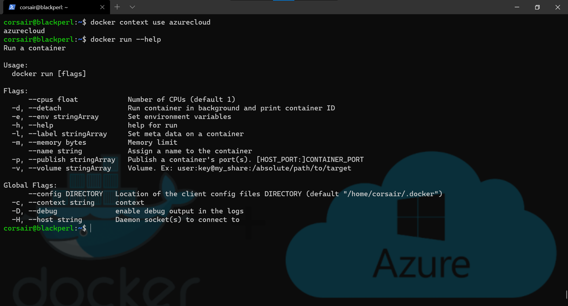 With the context created, we will deploy the exact same container as we did locally and, even more beautiful, we will use the exact same command.