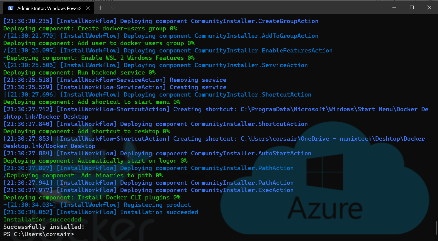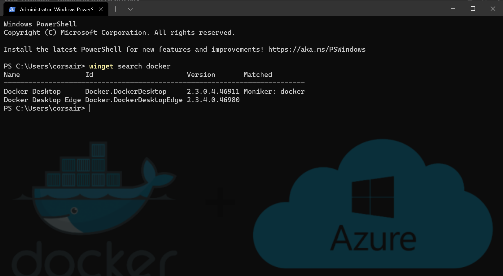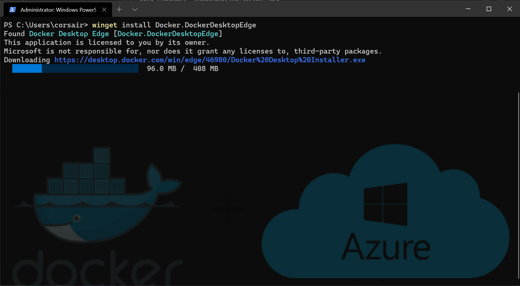 Launch Powershell in a Terminal as Administrator and let's install Docker Desktop on Windows: