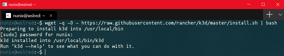 wget -q -O - https://raw.githubusercontent.com/rancher/k3d/master/install.sh | bash